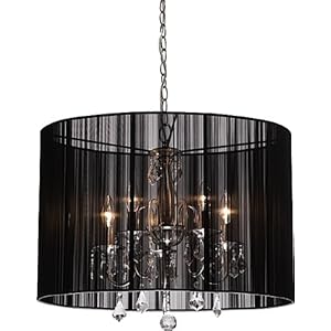Claremont's 5-lite mini chandelier features beautifully shaped arms in polished nickel finish, elegant crystal jewels with large oval shade in black string fabrics. For over 50 years, ARTCRAFT has earned a reputation for excellence in home lighting products that is the envy of many companies in North America. ARTCRAFT is a "family" owned business with many talented and skilled individuals, all dedicated to quality in manufacturing and to personal attention for customers. ARTCRAFT's exacting quality standards and exceptional designs "shine" through their entire product line - from bathroom vanities, table lamps and exterior lighting to beautiful dining room chandeliers, grand foyer pieces, designer mirrors, and crystal. Whatever your home lighting needs, ARTCRAFT looks forward to serving you in the new millennium.