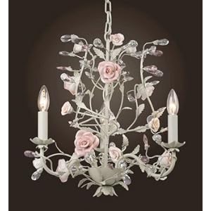 Finish:Cream, Crystal:Clear, Light Bulb:(3)60w B10 Cand C Incand This series is a tribute to England's first porcelain manufacturers dating back to the mid-18th century. Factories of the time developed product for the aristocratic market. Although many are no longer in operation, the techniques of hand working molds and patterns still apply today. The strength and non-porous nature of porcelain allow intricate details and shapes as evidenced in the exquisite flowers accenting this series. This collection has crystal accents and intertwined branches with rose accents.