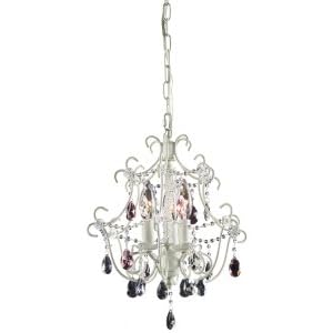 Delicate and petite the ELK Lighting Minique Three Light Chandelier has an antique white finish and elegant crystal and glass droplets. Light-catching and eye-catching, the Minique Chandelier adds a subtle look of elegance to your home. Features: Finish: Antique White Style: Traditional No. of Tiers: 1 Tier Light Direction: Uplight Chandelier has crystal,glass droplets Chandelier has three feet of chain Shade color: Whites,Creams 3 Lights (60 watt candle bulbs - not included) Assembly required Specifications: Weight: 3 lb Overall dimensions: 18" H x 13" W x 13" D