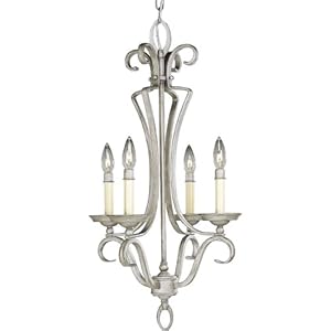 Progress Lighting P4331-44 Four-Light Chandelier with Square Arm Tubing and Ivory Candles with Matching Candle Caps, Oxford Silver