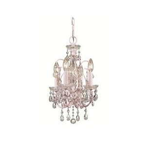 Finish: Blush, Crystal: Hand Polished, Light Bulb: (4)60w B10 Cand C Incand Imperial Chandelier. Beautiful , timeless detailing with the glass column and crystal accents. This shabby chic mini chandelier in blush (soft pale pink) finish and adorned with clear hand cut crystal jewels.
