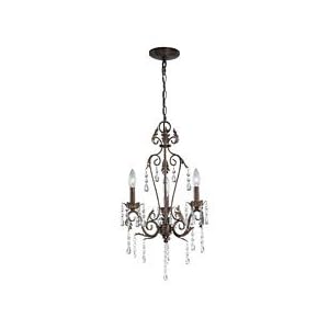 Color/Finish:Antique Crystals, Light Bulb:(4)40w B10 Cand C Incand 3 light chandelier with crystal accents.